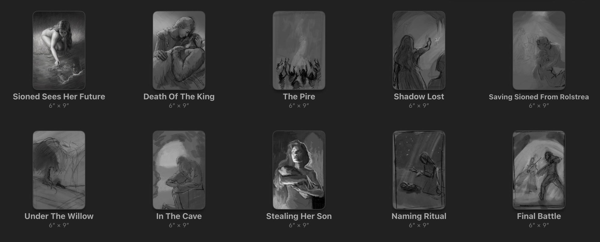 Artwork: 10 black and white interiors and full color signature page